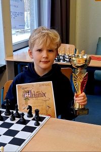 Parsa erspielte sich in der U8-Altersgruppe mit 4,5 Punkten einen beachtlichen 7. Platz von 23 Teilnehmern. Auch Rune Gawandka, neu in unserem Verein, verbessert stetig sein Schachkönnen und wurde in der U12/14-Altersgruppe bei 36 Teilnehmern Neunter!